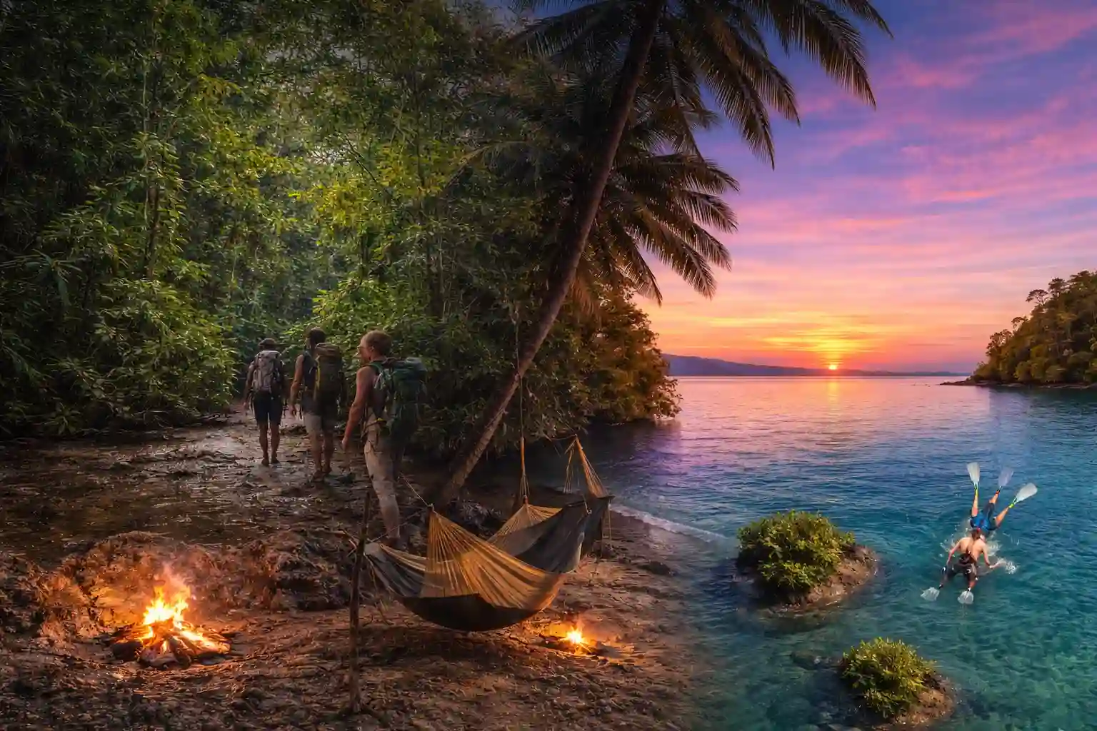 The expedition begins with an early pickup from your hotel in Uvita or Pavones, followed by transfer to the La Gamba / Piedras Blancas sector. From there, the route crosses a remote section of forest with river crossings, humid jungle terrain, and a full 16 km traverse before transitioning toward the coast and continuing into Golfo Dulce.